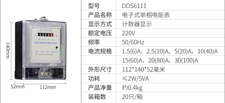 型號:DDS6111單相電表